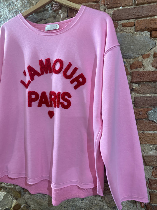 Felpa L’Amour Paris rosa chiaro