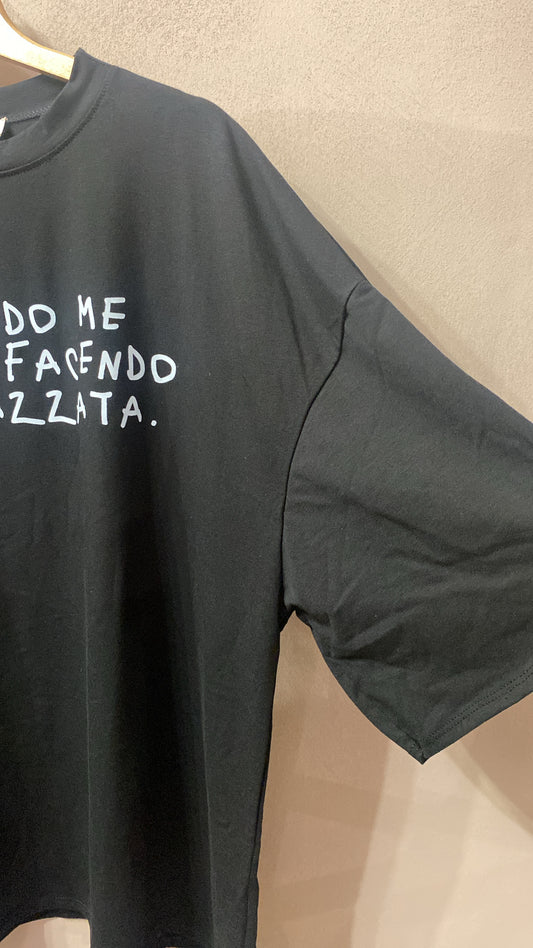 T-shirt over nera stampa “Secondo me stiamo facendo una cazzata”