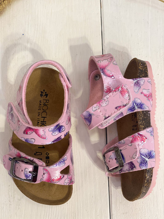 In offertaBIOCHIC sandali in pelle rosa con farfalle