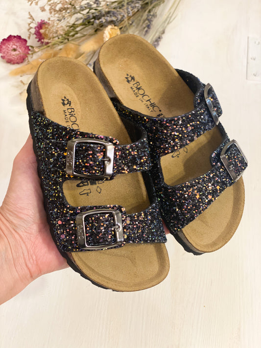 Biochic ciabatta doppia fascia glitter nero