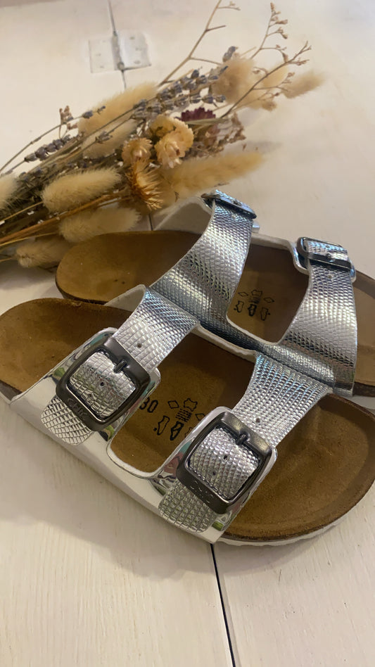 BIOCHIC ciabatta in pelle laminata argento