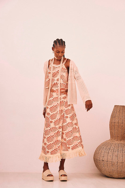 Gonna Ruota in cotone e lino colore bianco grezzo