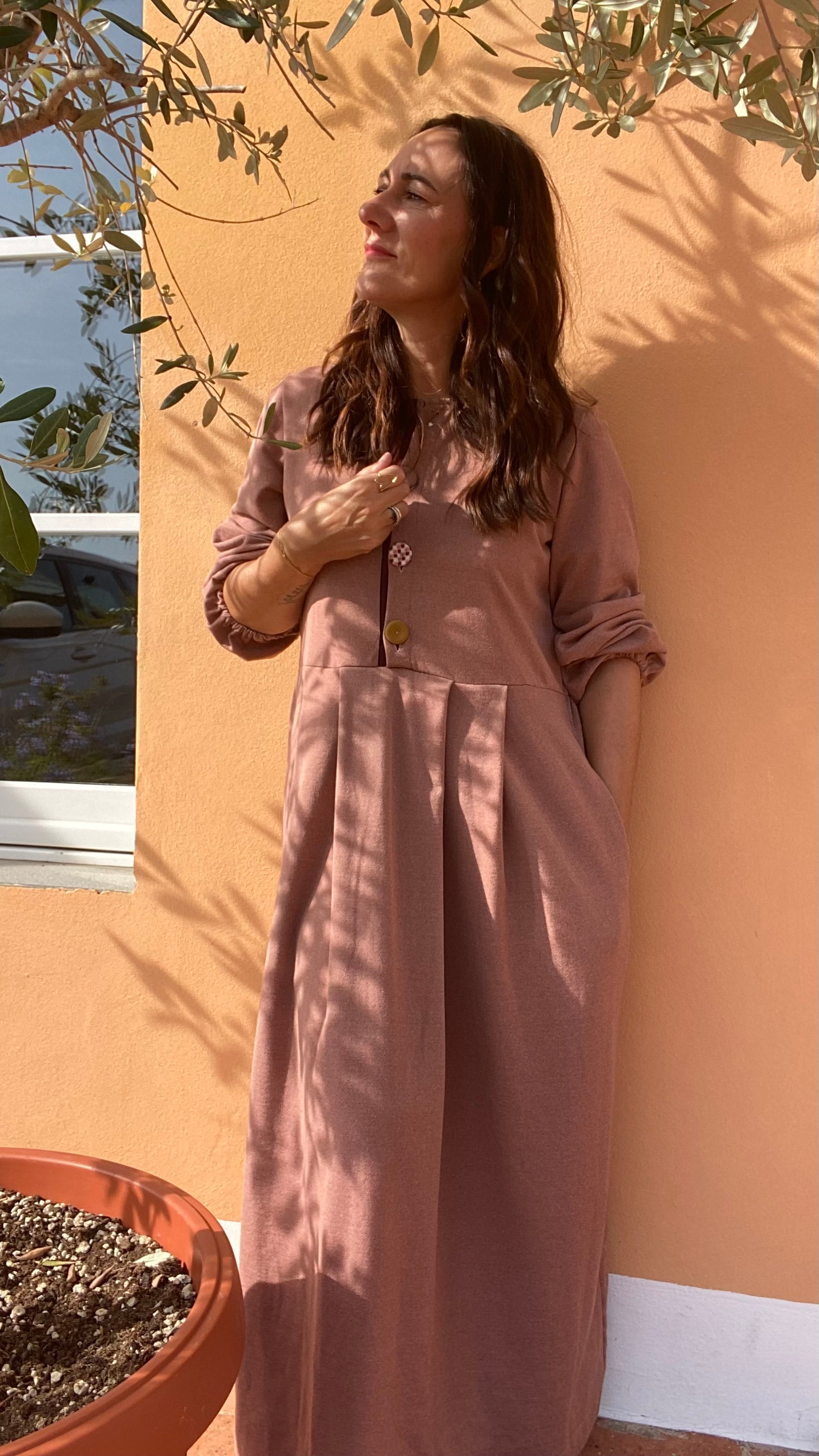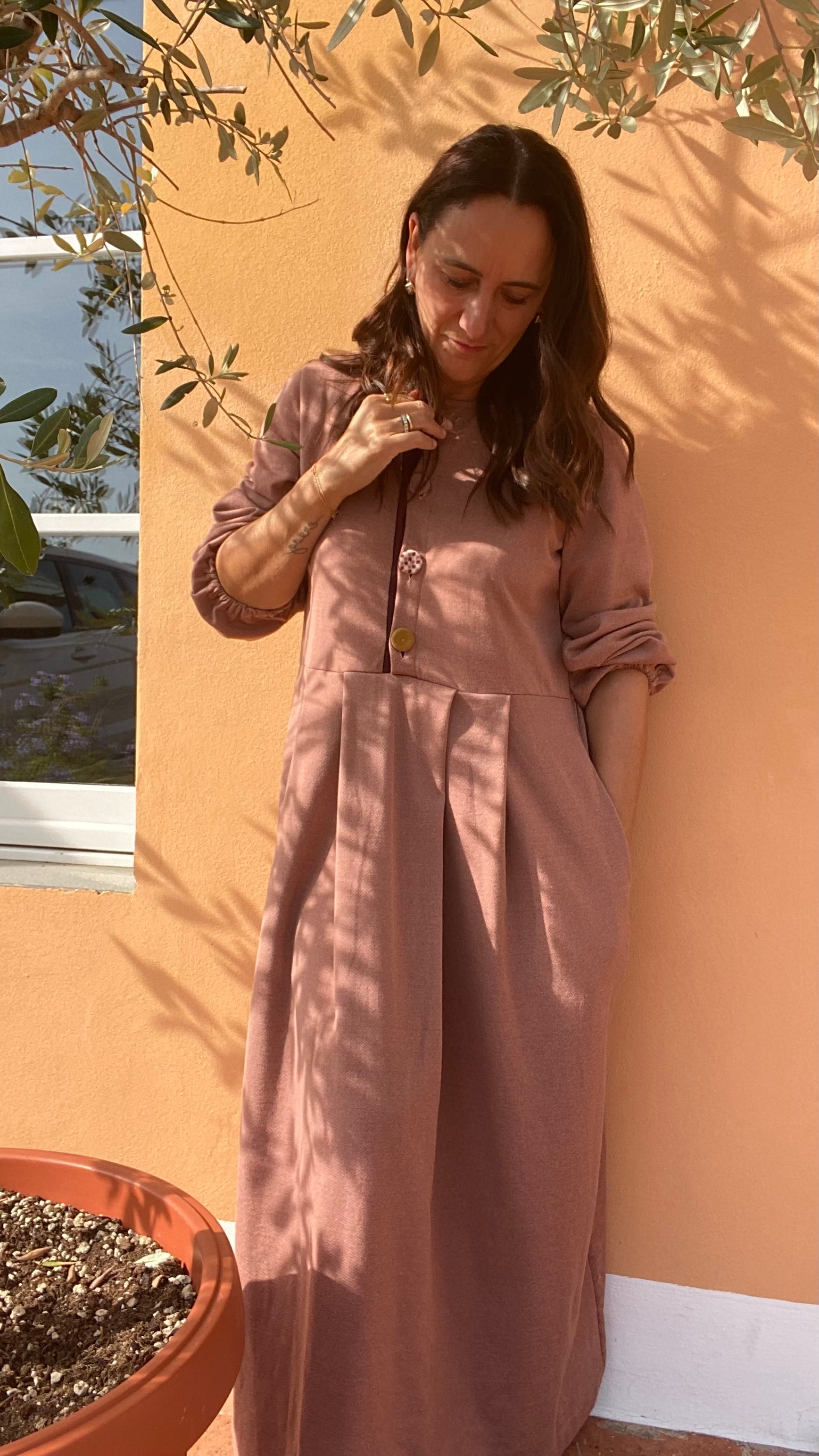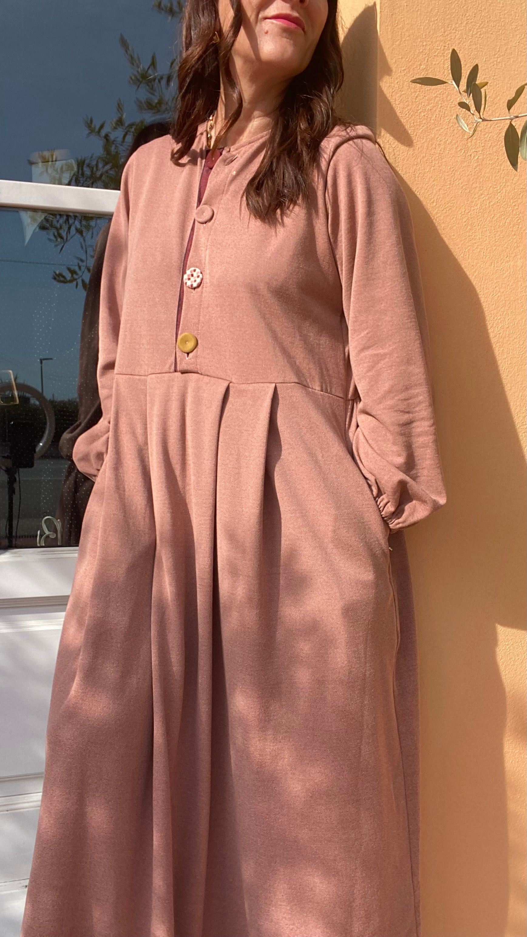 Abito lungo in felpa di cotone colore phard.