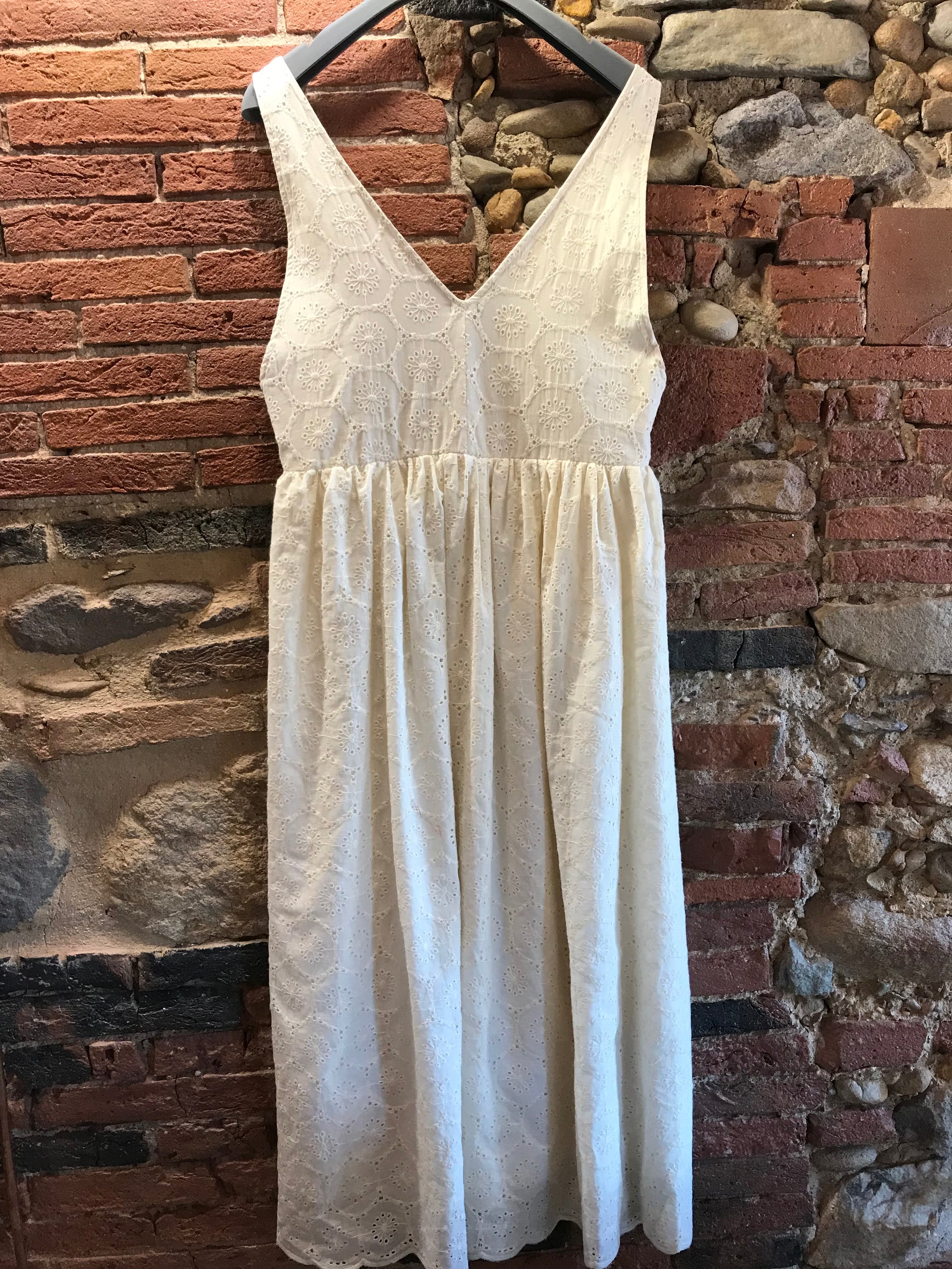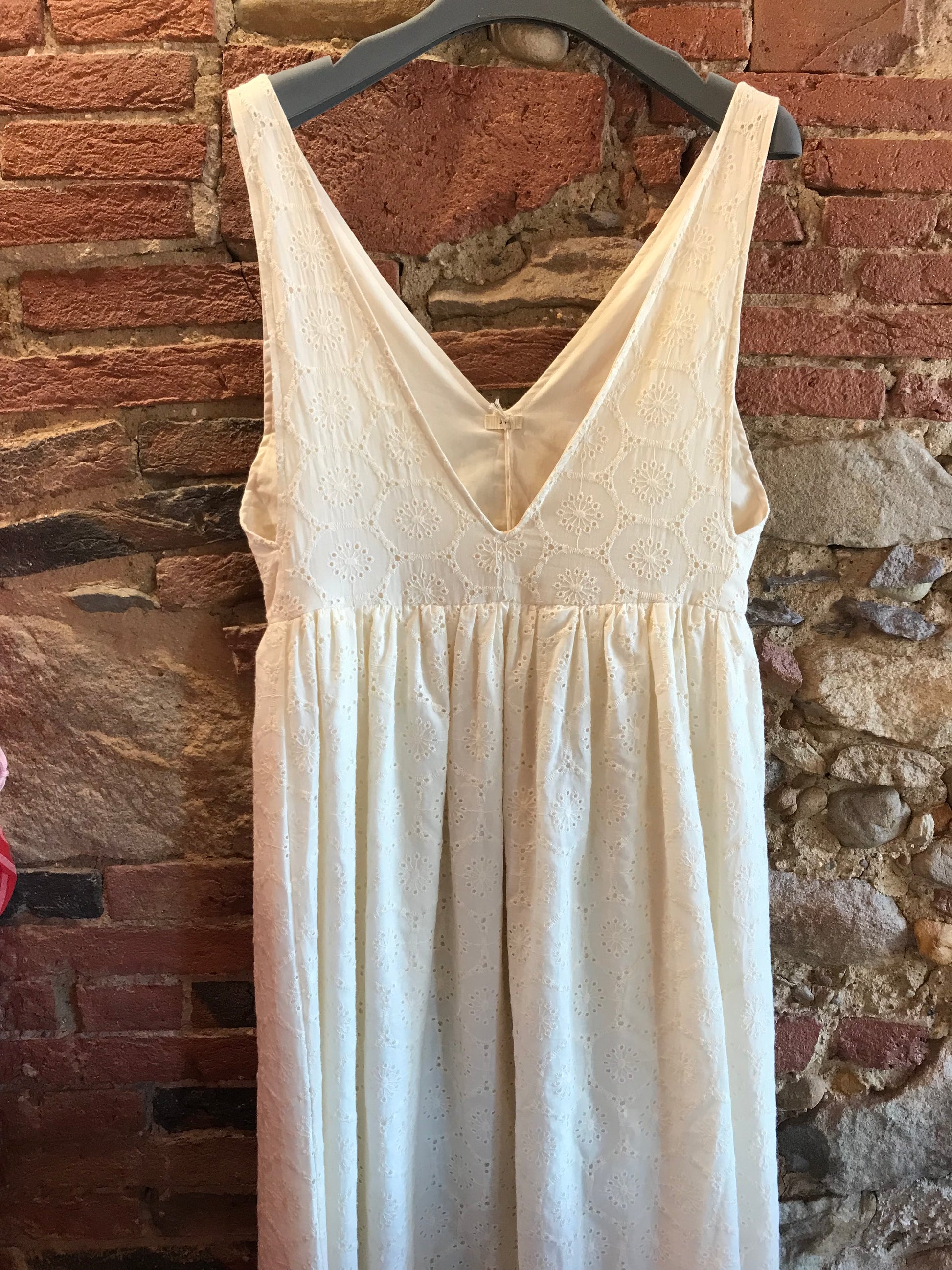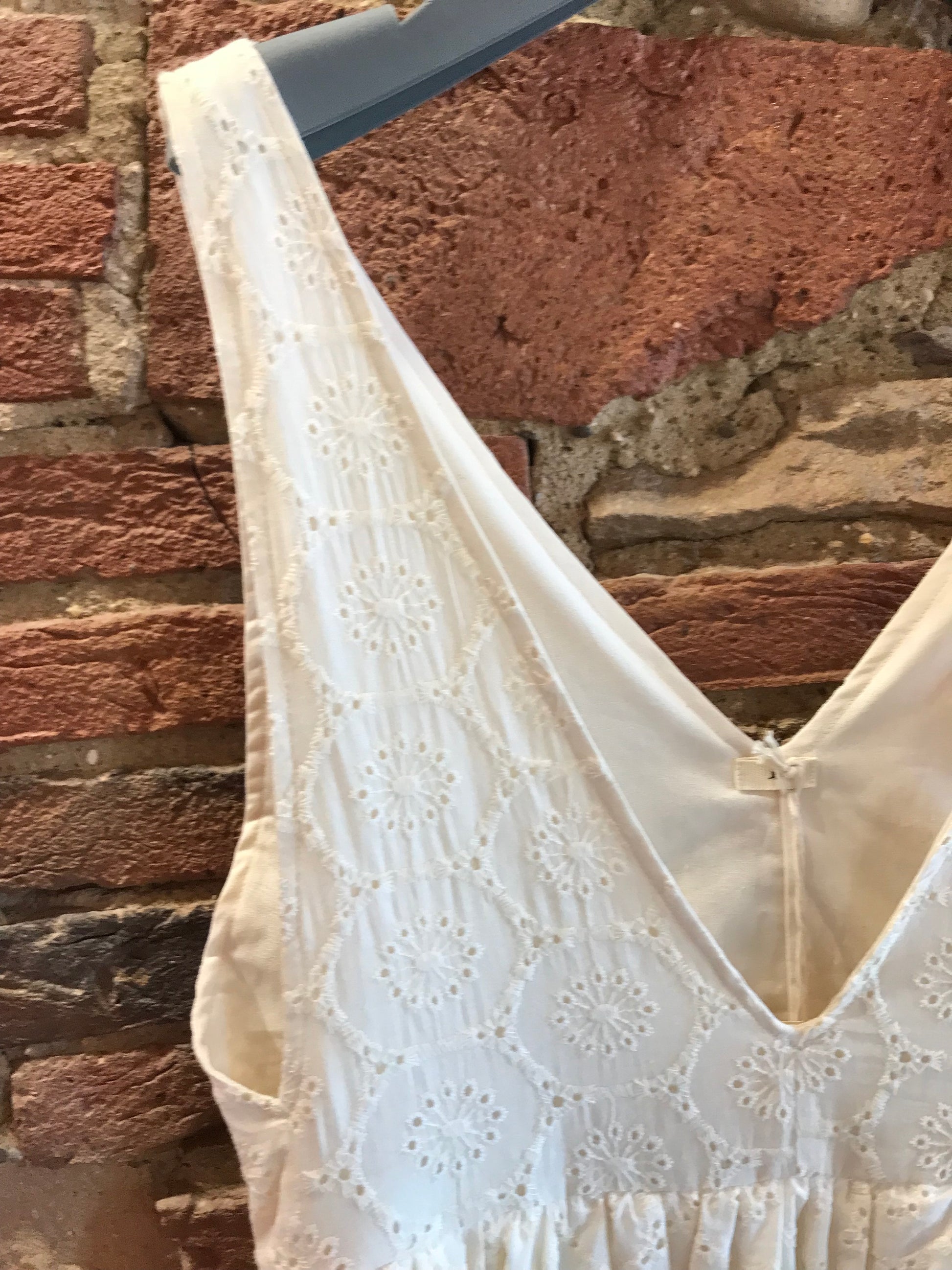 Abito lungo con scollo a V profondo in cotone sangallo colore latte.
