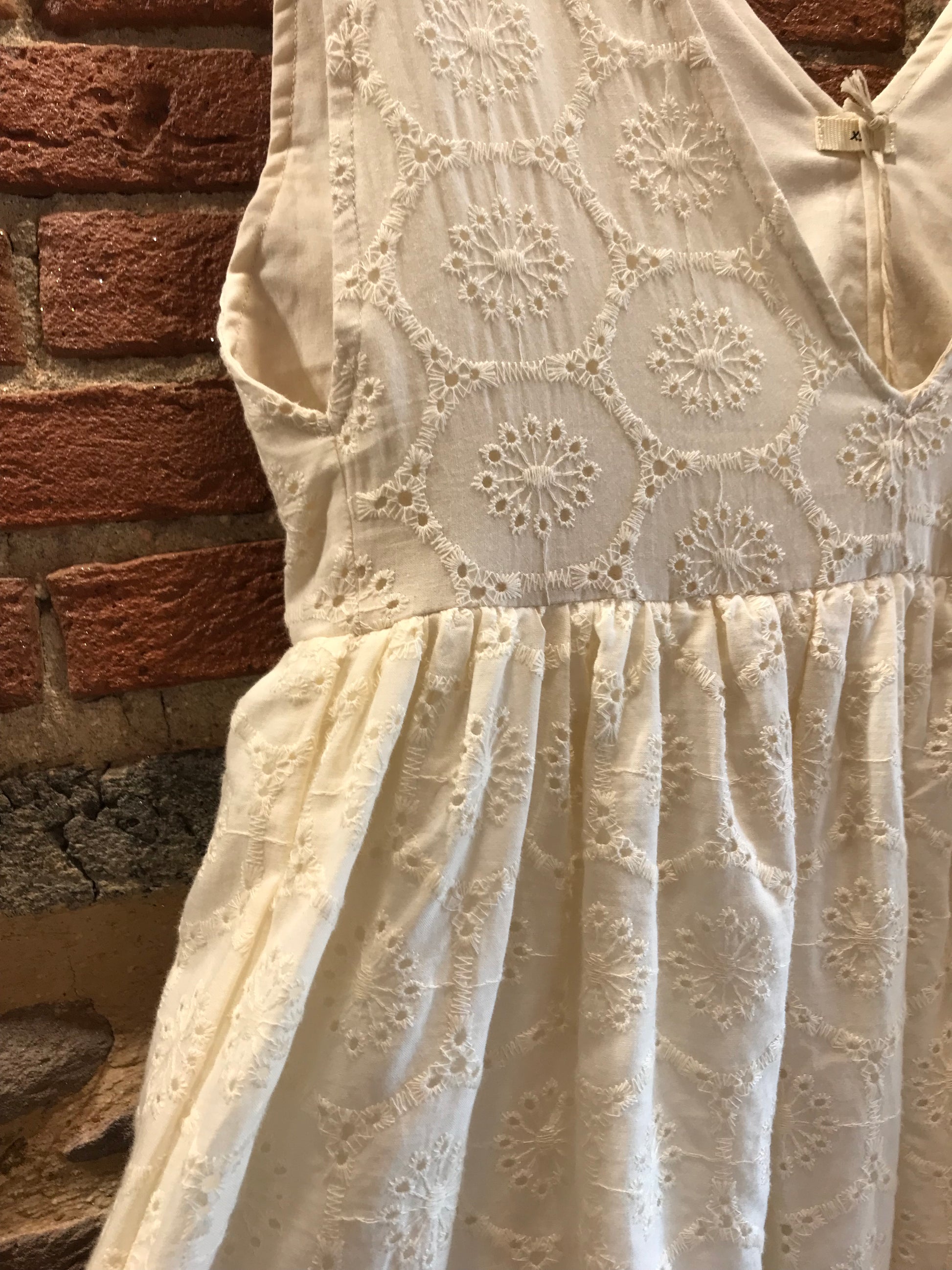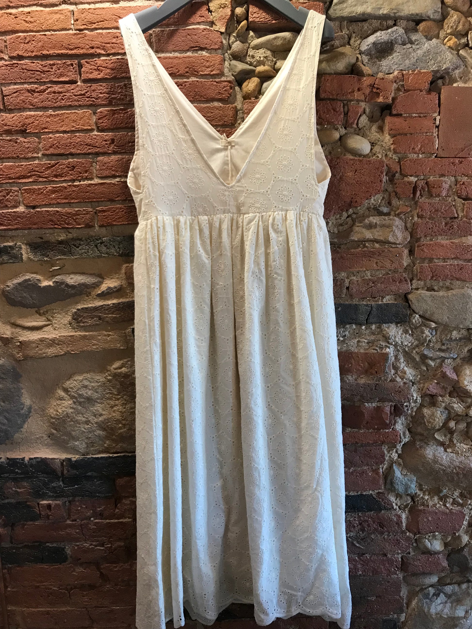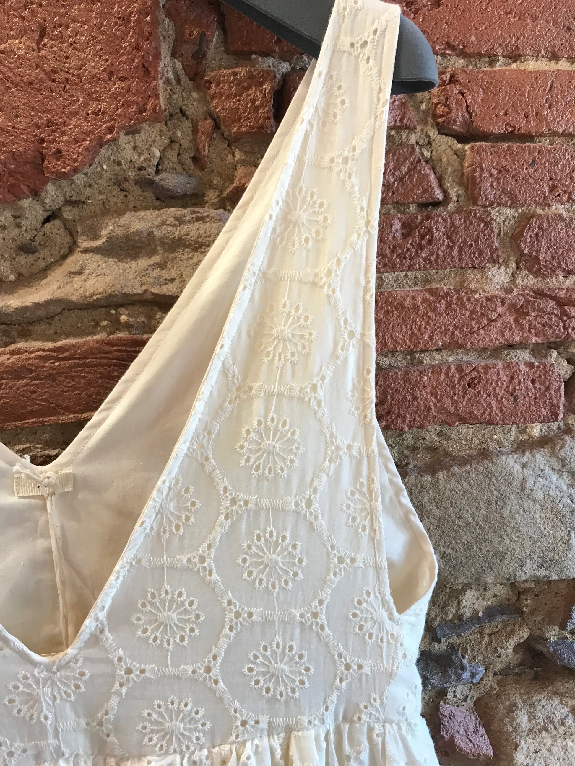 Abito lungo con scollo a V profondo in cotone sangallo colore latte.