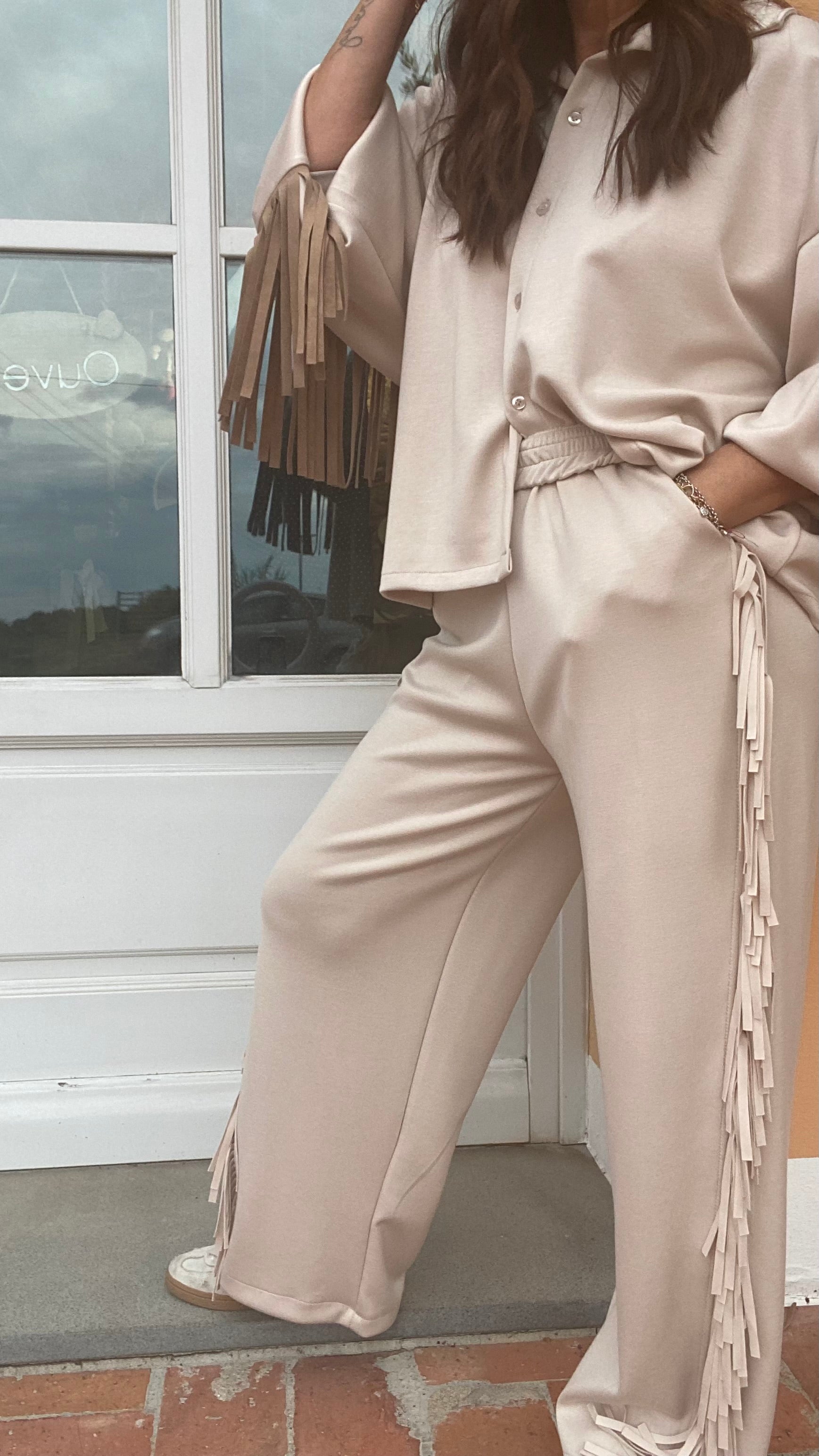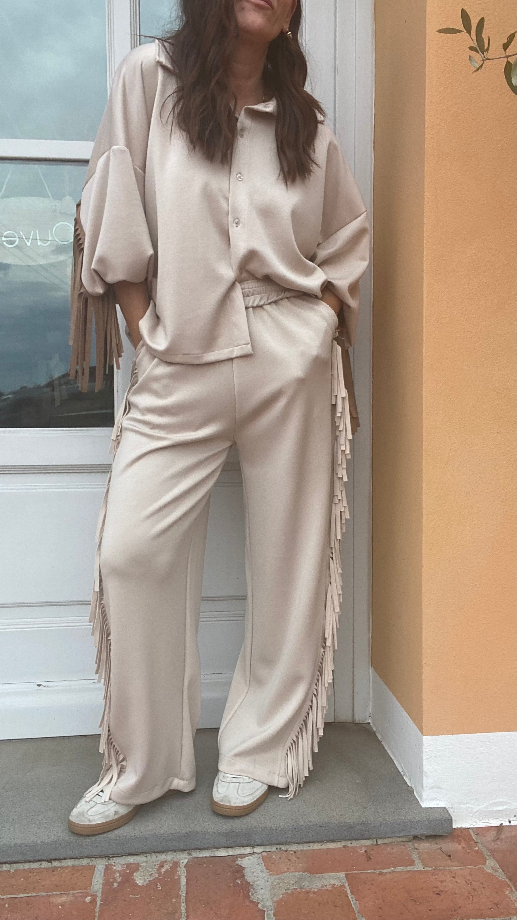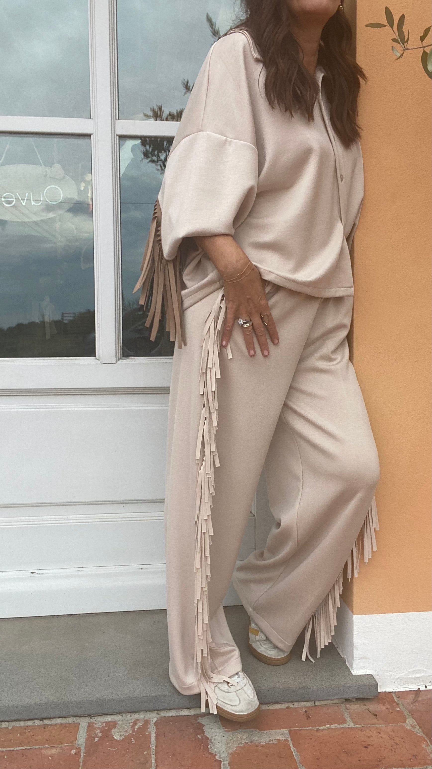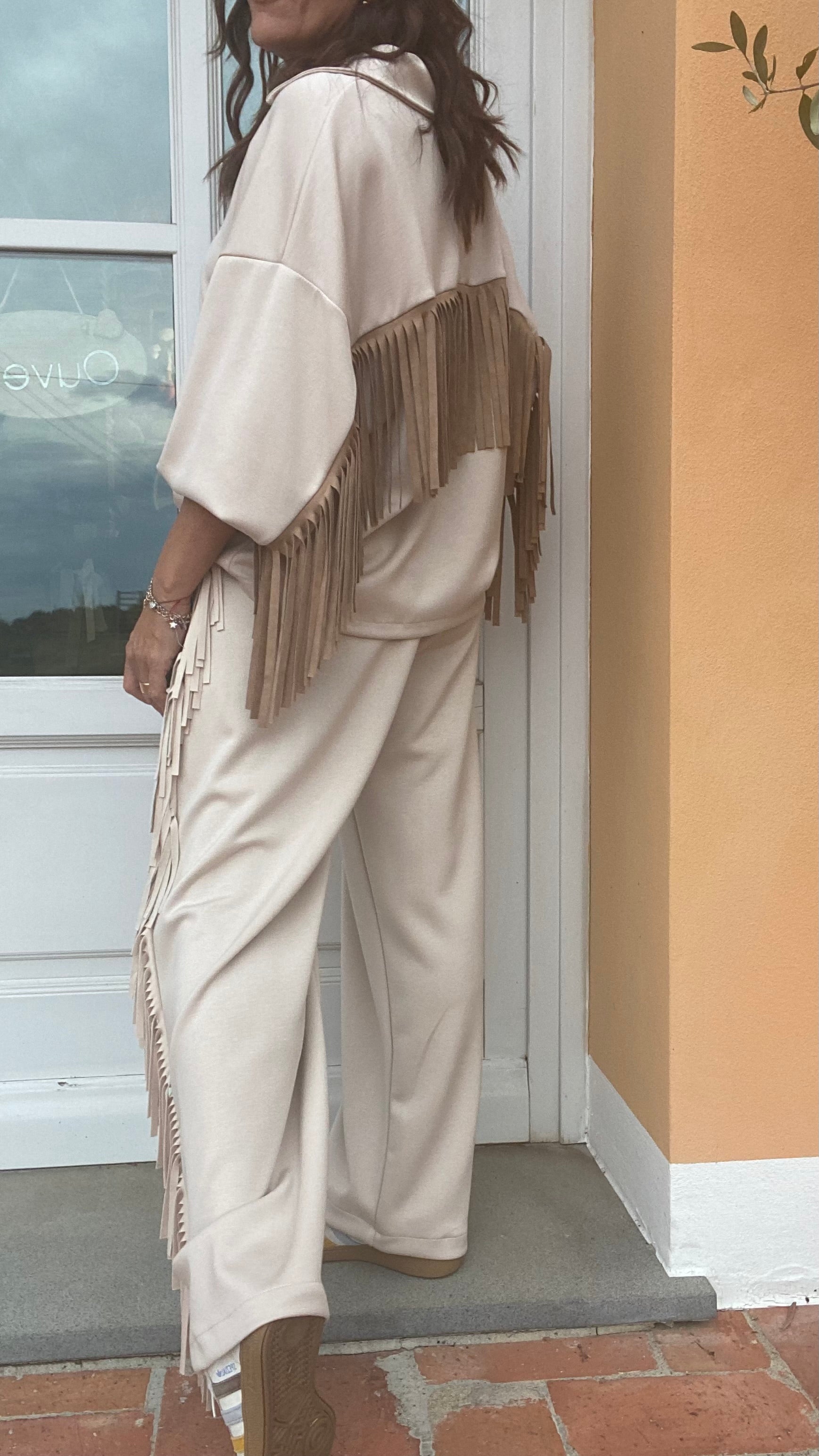 Frange sul retro del capo che continuano anche lungo le maniche.
