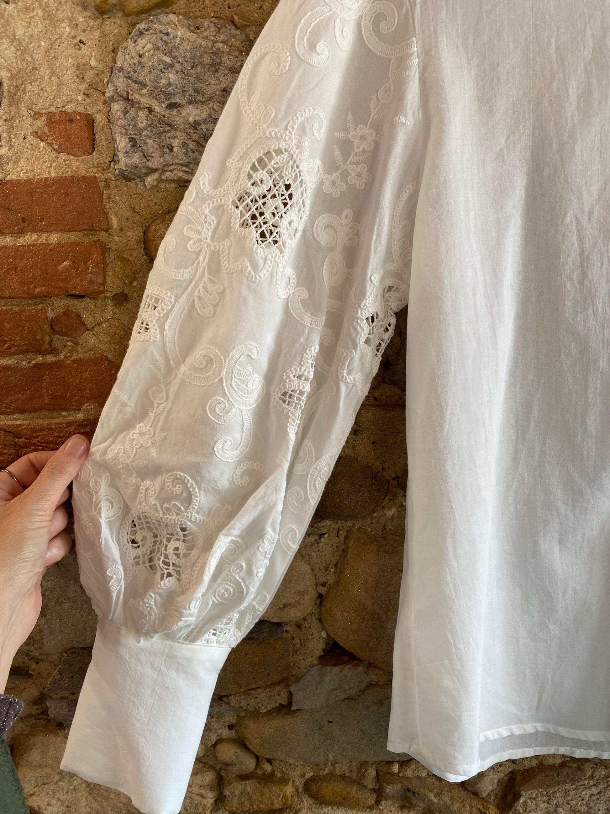 Un capo romantico, facile da indossare, ma con quel qualcosa in più che lo rende speciale, le maniche ampie impreziosite da ricami.