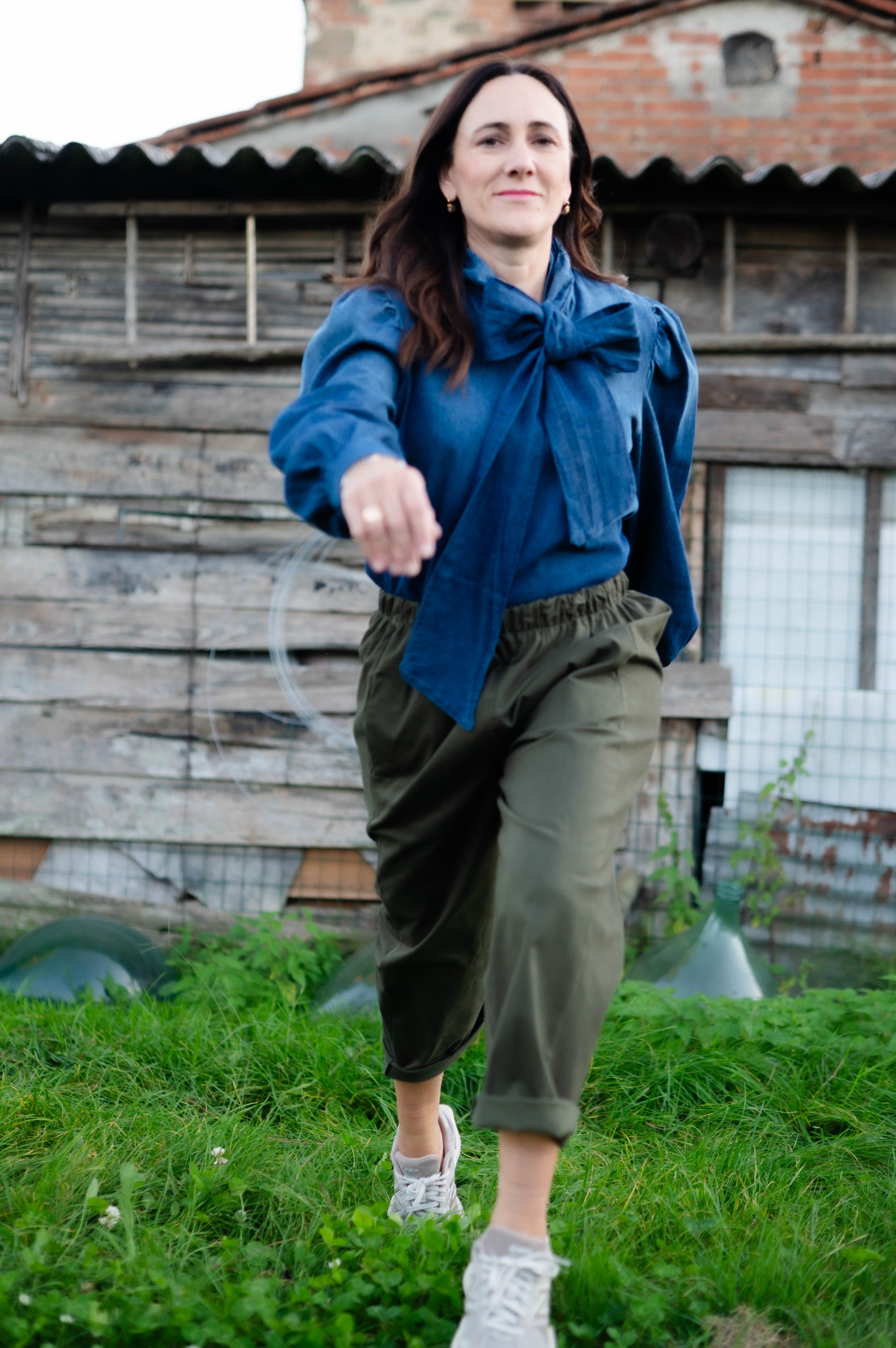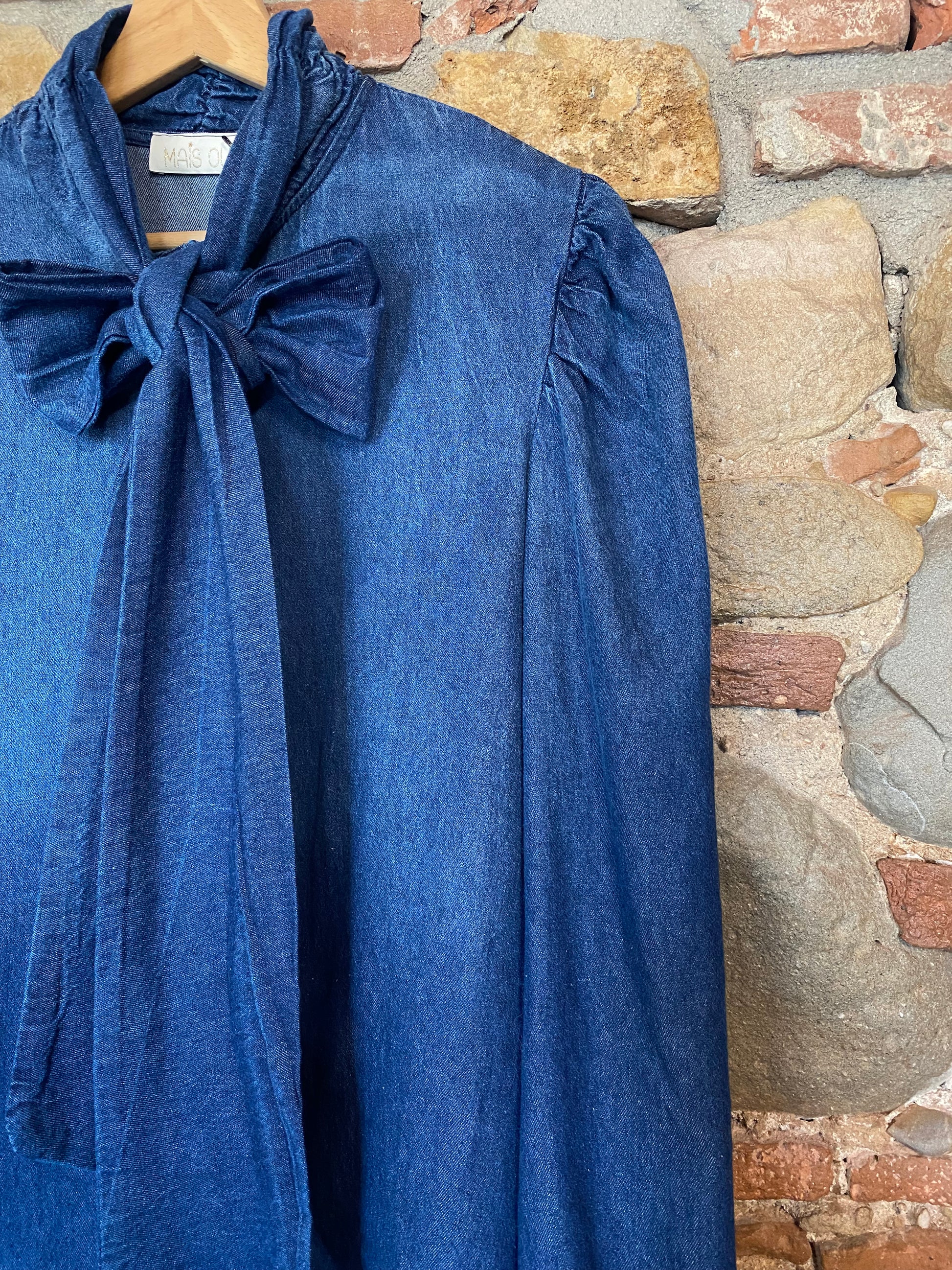 Romantica ma con carattere, questa camicia in denim morbidissimo ha un volume fluido e femminile, bilanciato dal maxi fiocco al collo che aggiunge un tocco deciso e sofisticato e un po’ bonton.
