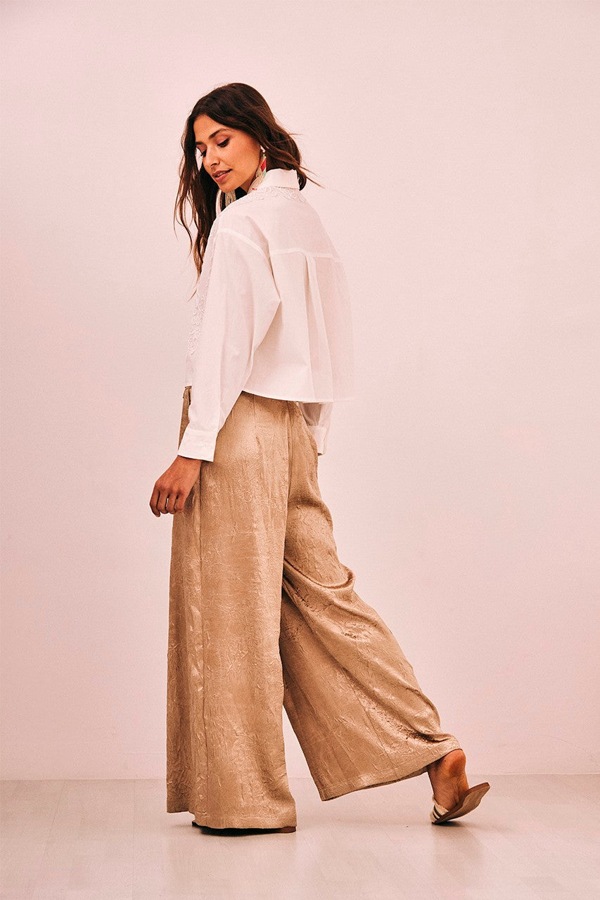 Camicia corta a maniche lunghe, lunga fino alla vita, con taglio ampio oversize. Applicazioni in tulle ricamate.