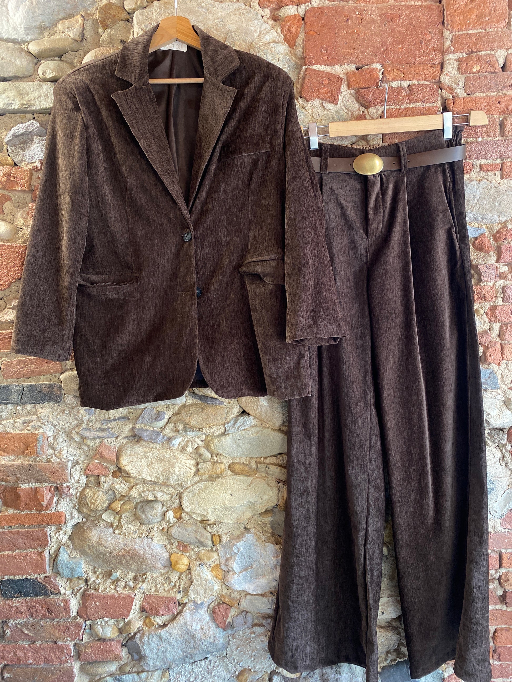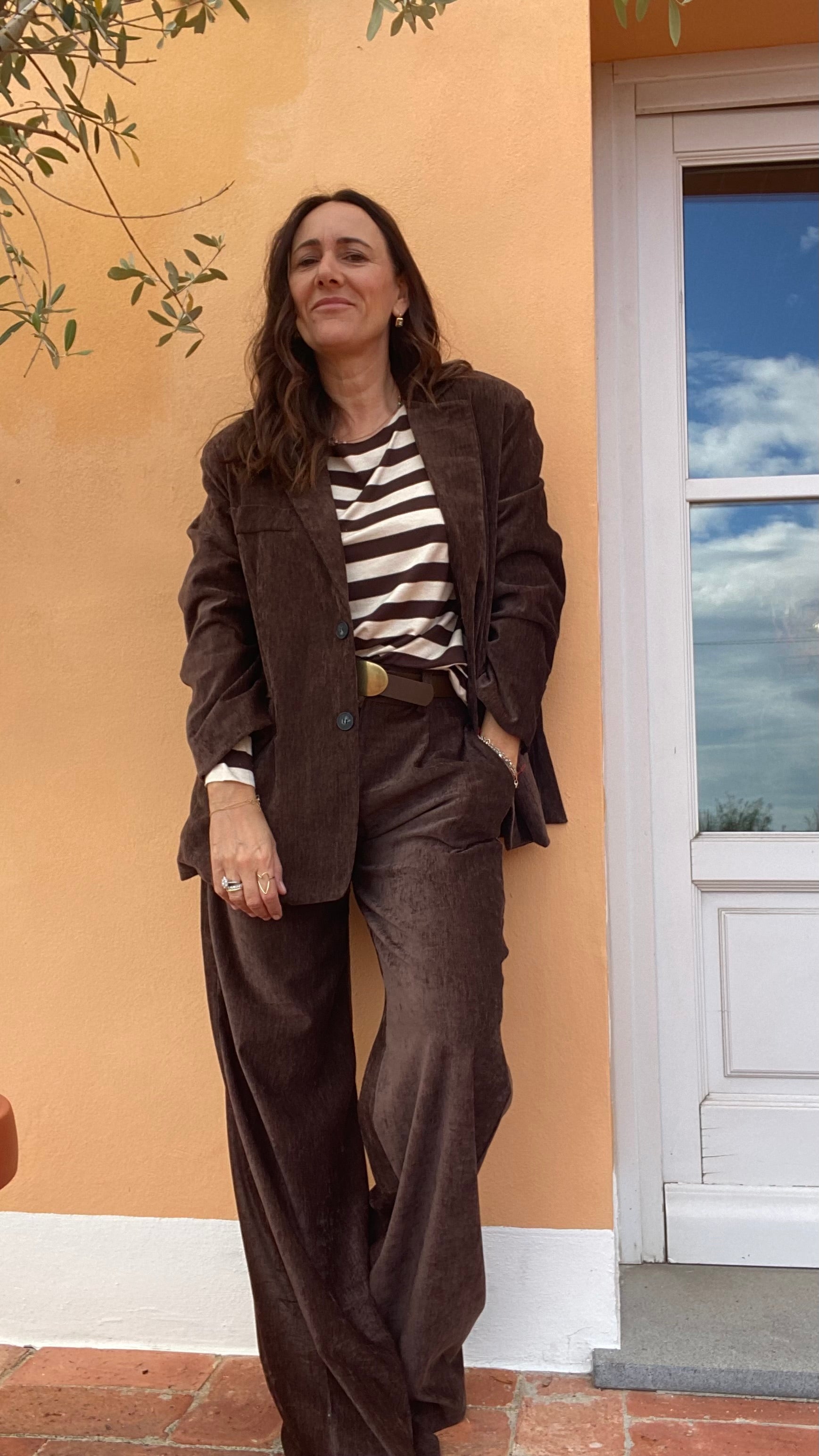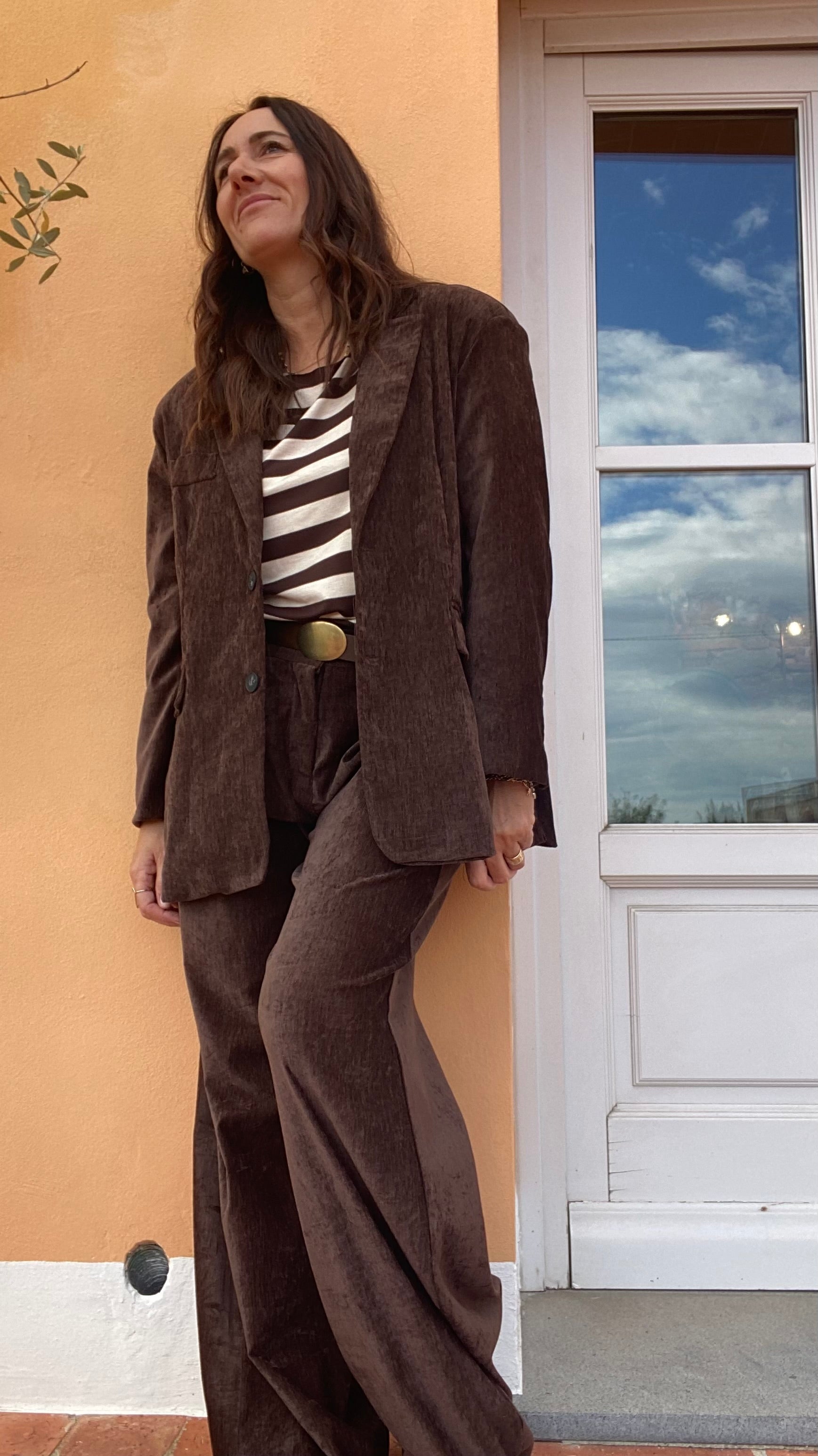 Giacca monopetto, chiusura con due bottoni, tasche laterali con patta, al polsino quattro bottoni per apertura, collo con reverse e spalline imbottite, fodera interna colore bordeaux, la giacca a due spacchi laterali nella parte posteriore per dare movimento.