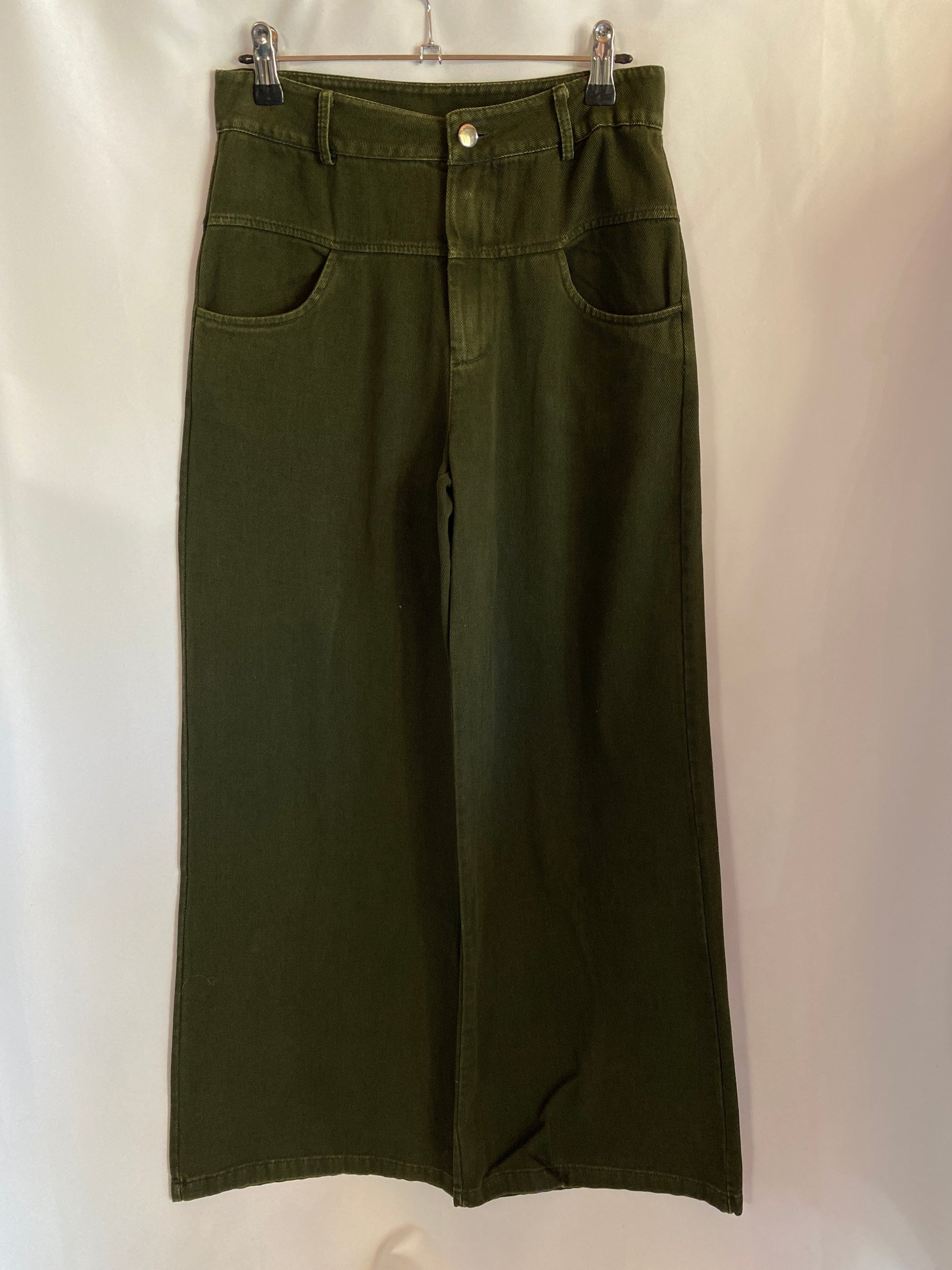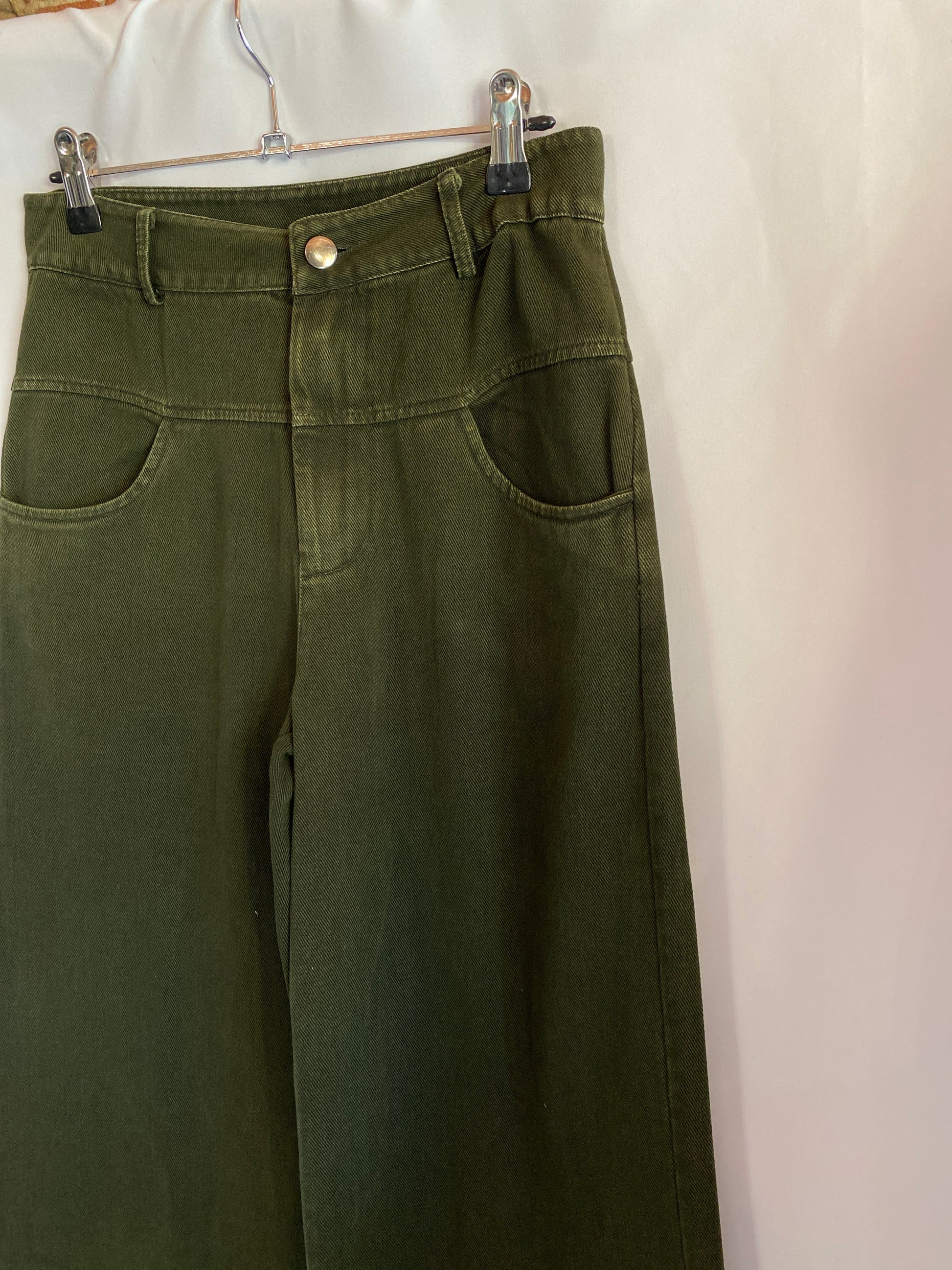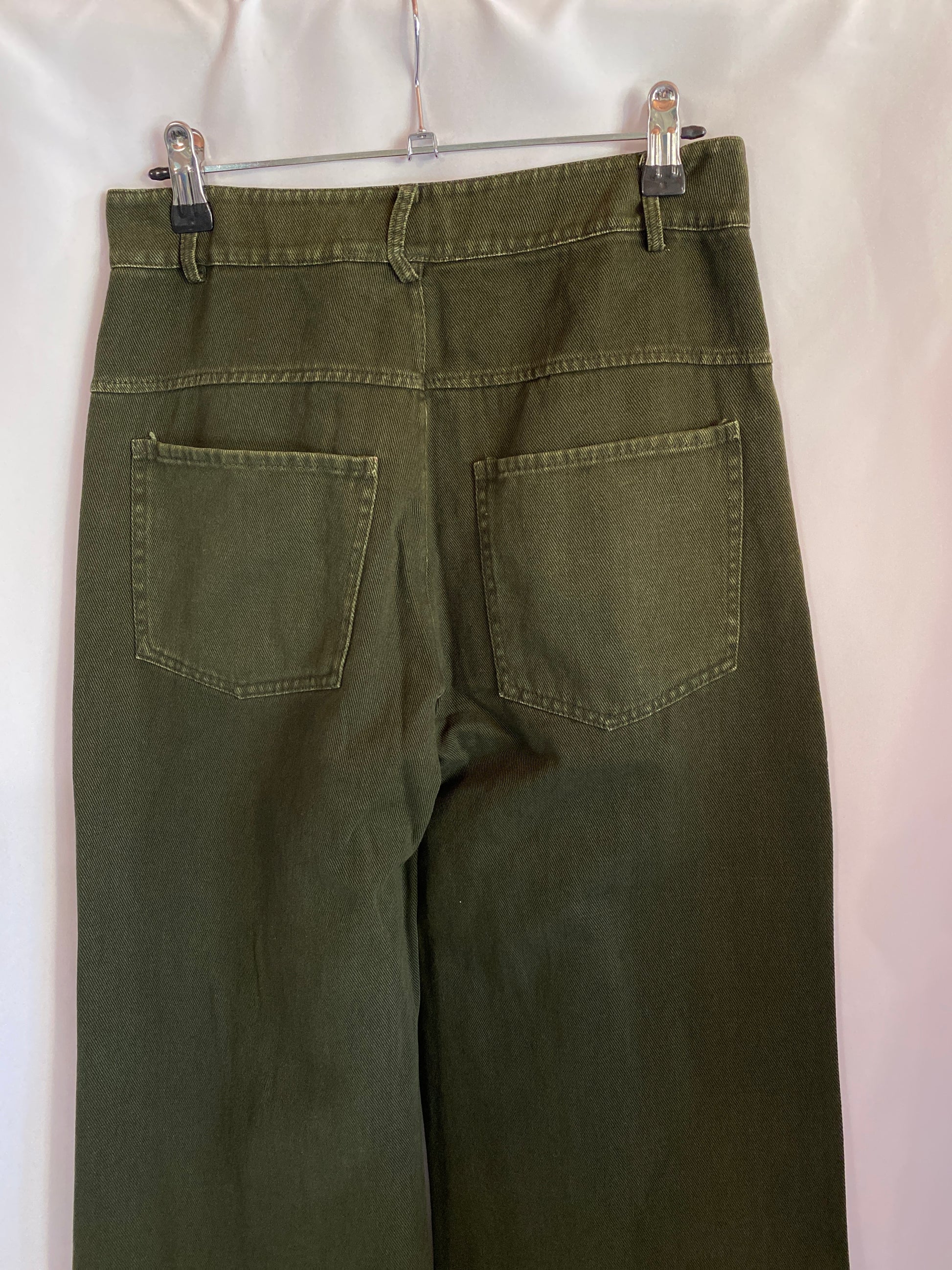 Pantalone in denim di cotone stone washed colore verde bosco.