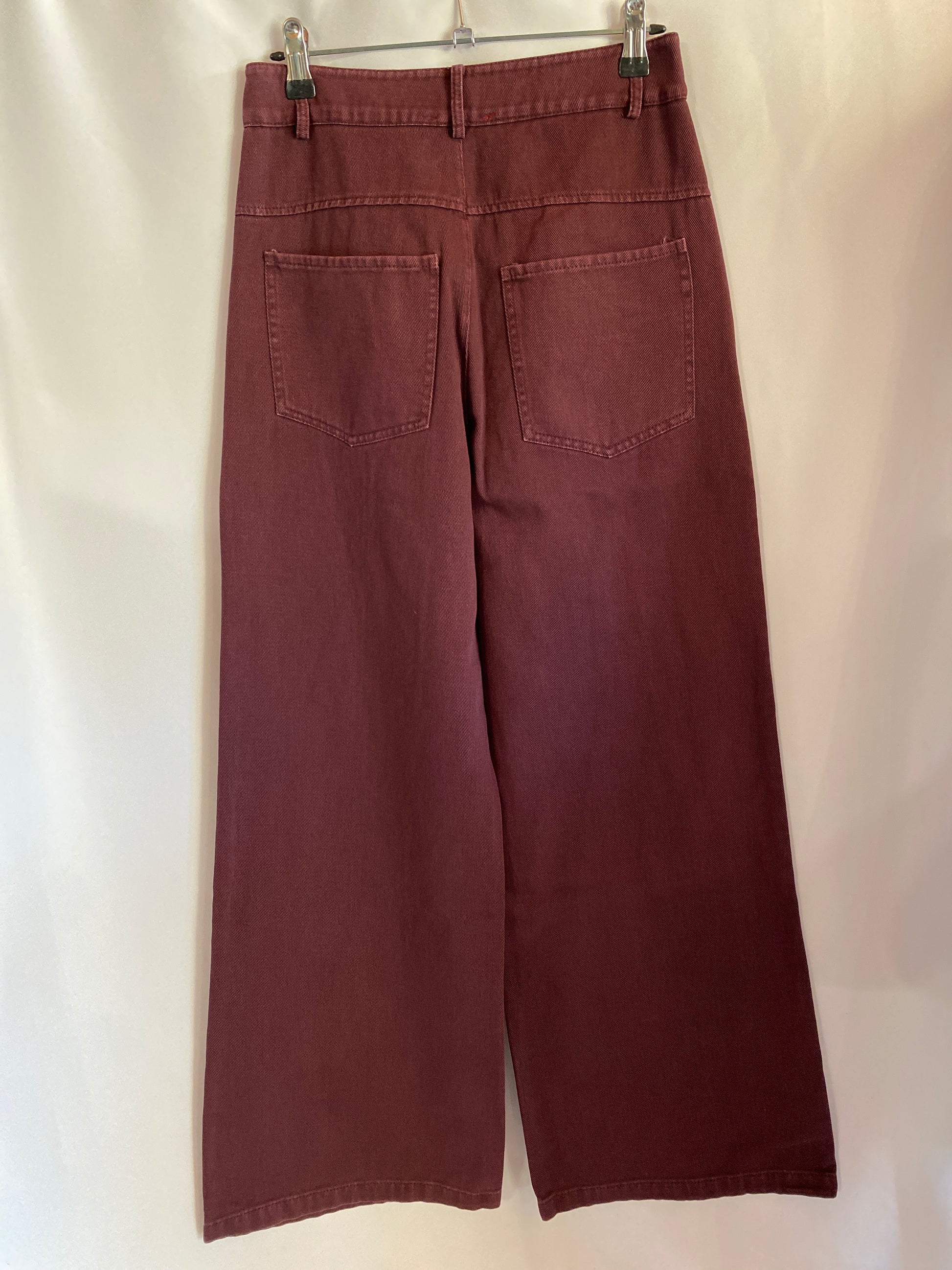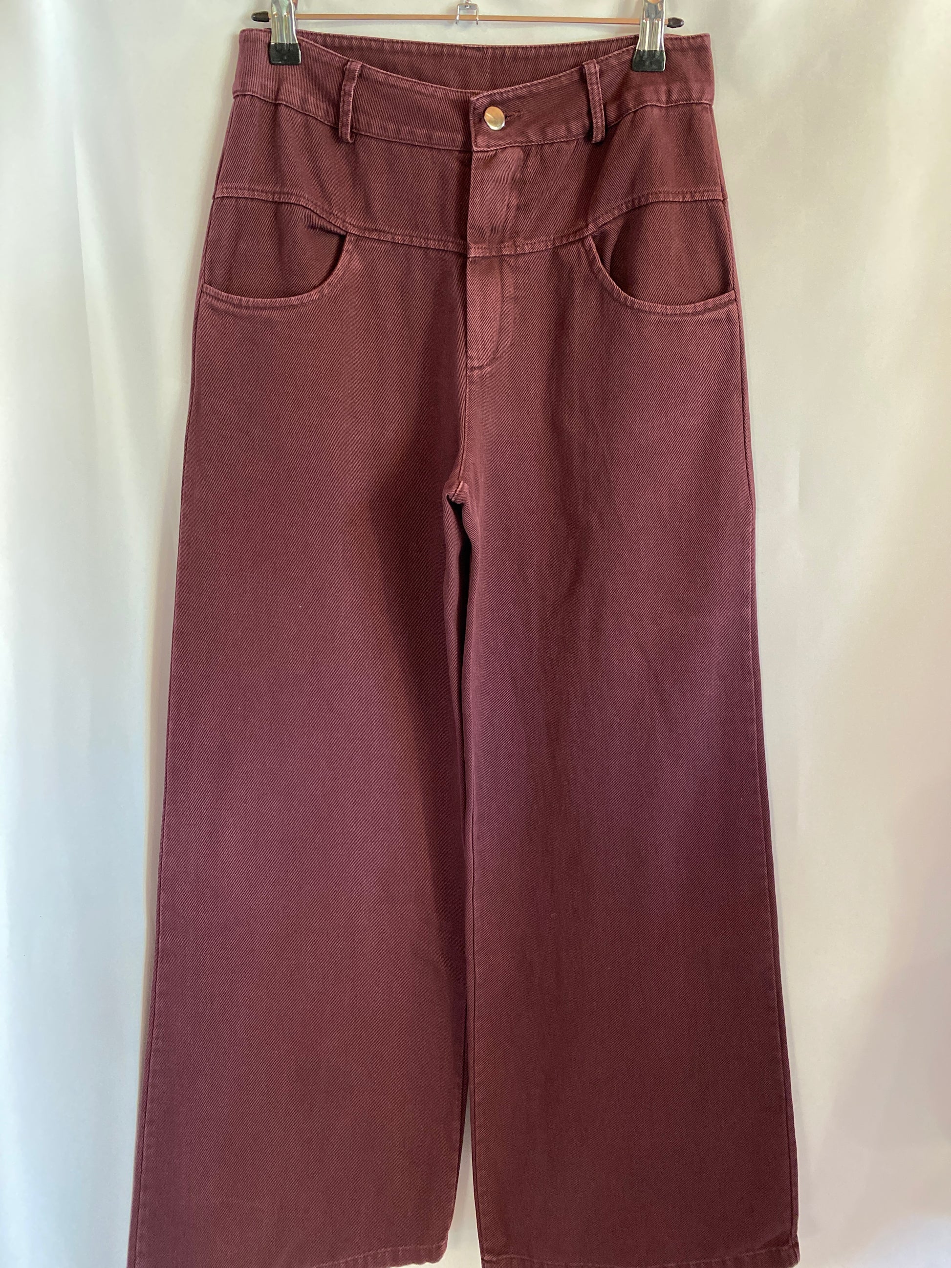 Modello vita alta, con banda in vita e tasche, gamba dritta leggermente palazzo, chiusura portone cerniera passanti in vita per cintura tasche a toppa dietro.